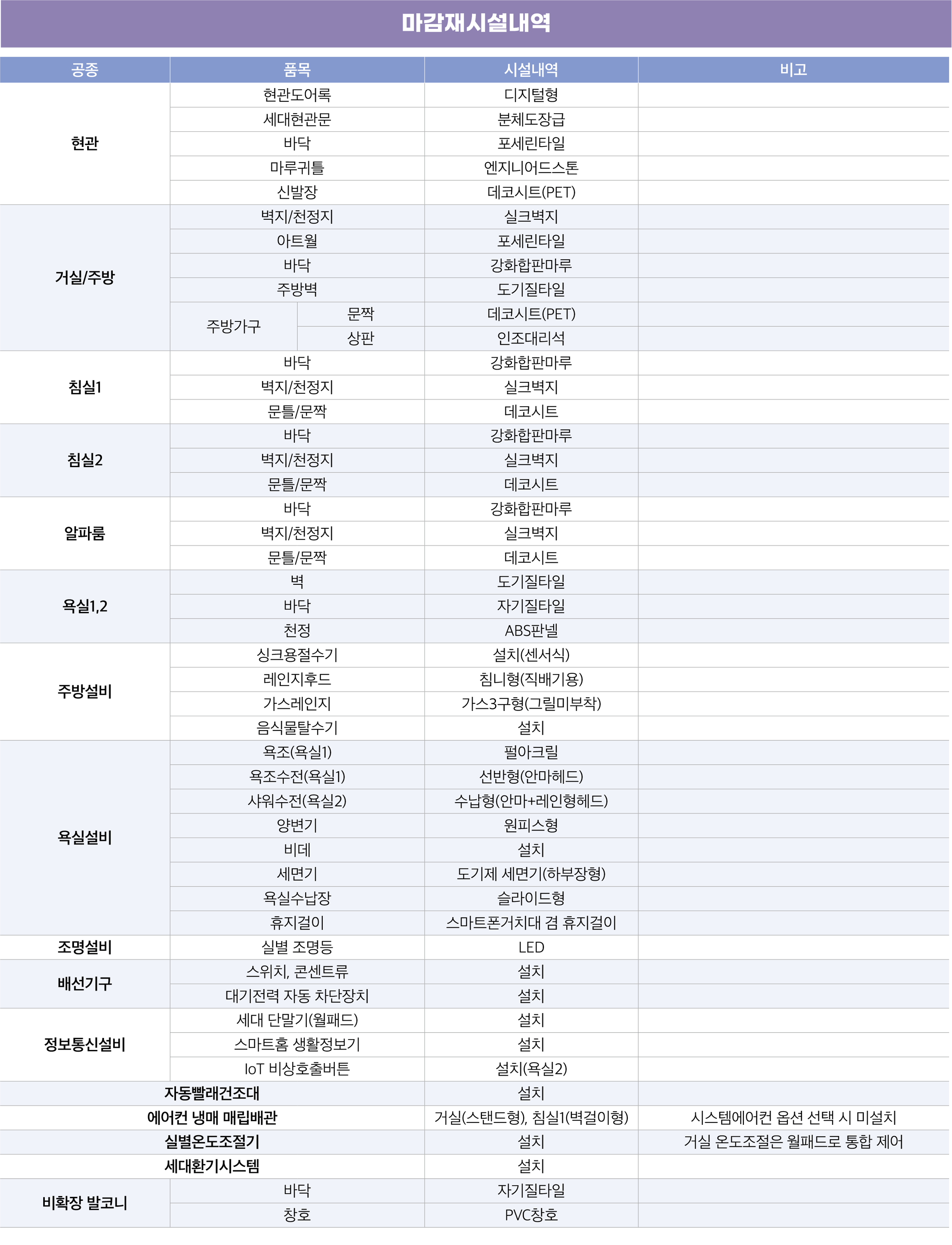 주요 마감재 내역
